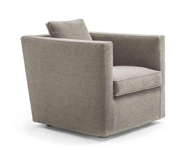 Ella chair fra Frigerio har et klassisk design med strenge og firkantede linjer. Armlenene er i samme høyde med ryggen ved å skape en innbydende effekt. Det skreddersydde trekket fremhever formene ved å gjøre det til en ekte passepartout. Trekket er helt avtagbart i stoff og festet i skinn.