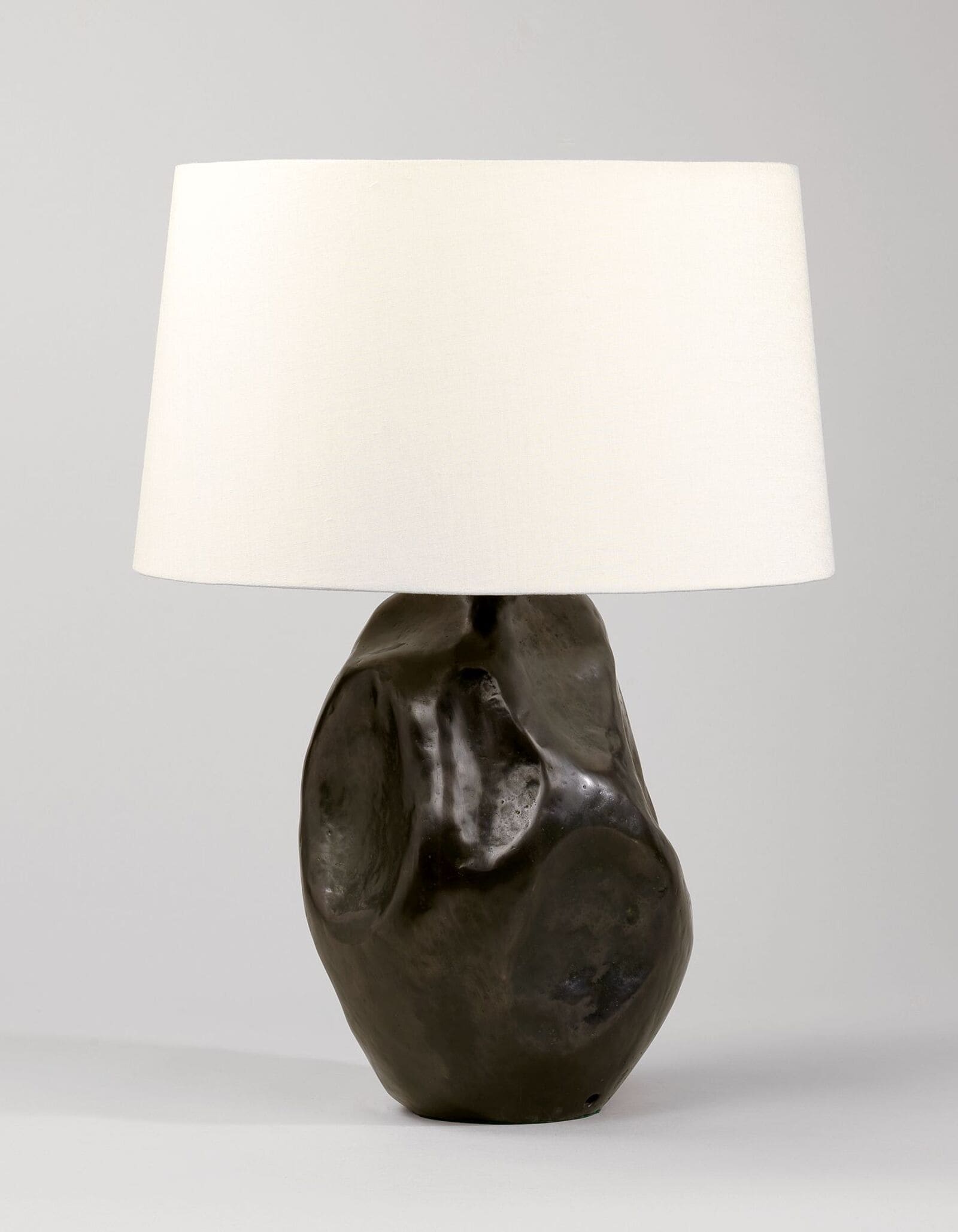 Zaragoza fra Vaughan er en bordlampe i bronse vist med skjerm i lin. Lampen er inspirert av sten fra fjellet med sitt skulpturelle organiske design. Lampefoten er formet i solid messing som er bronsert.